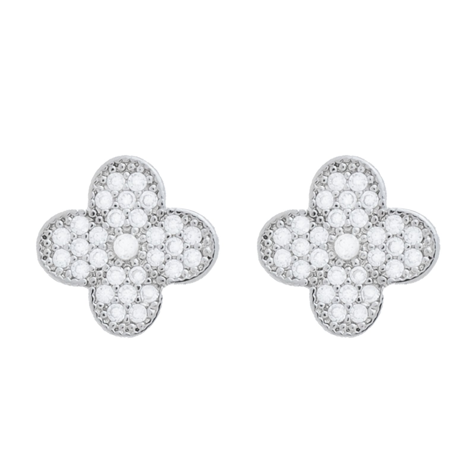 Conjunto Prateado de Trevo Cravejado de Zircônia